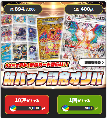 オリパは、「ガチャ」や「くじ」と呼ばれることもあります。 ポケモンカードの通常のパックはシリーズに合わせて、 5枚入っていますが、オリパはその店舗、個人が組んだ、 オリジナルなのでカードの値段、,枚数、内容もそれぞれです。